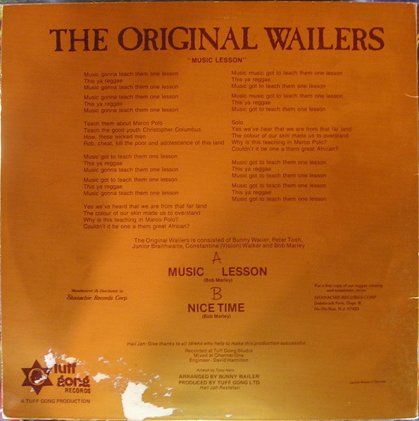 The Wailers - Music Lesson / Nice Time (12") (Very Good Plus (VG+))