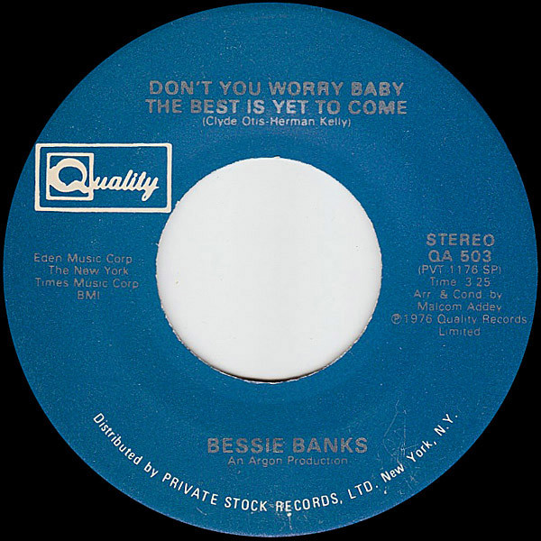 Bessie Banks - Don't You Worry Baby The Best Is Yet To Come (7", Single) (Near Mint (NM or M-))