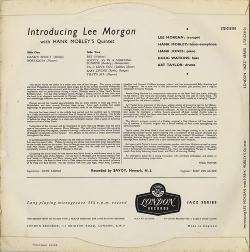 Lee Morgan With The Hank Mobley Quintet - Introducing Lee Morgan (LP, Album, Mono) (Very Good (VG))