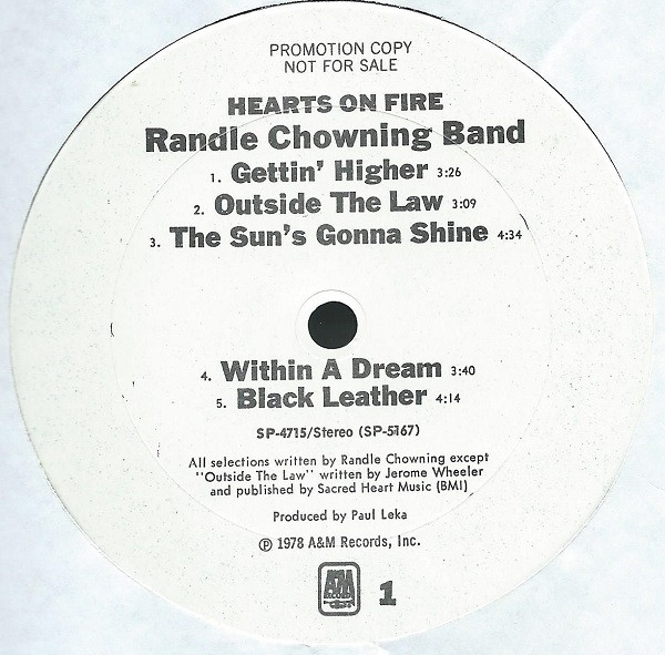 Randle Chowning Band - Hearts On Fire (LP, Album, Promo) (Near Mint (NM or M-))